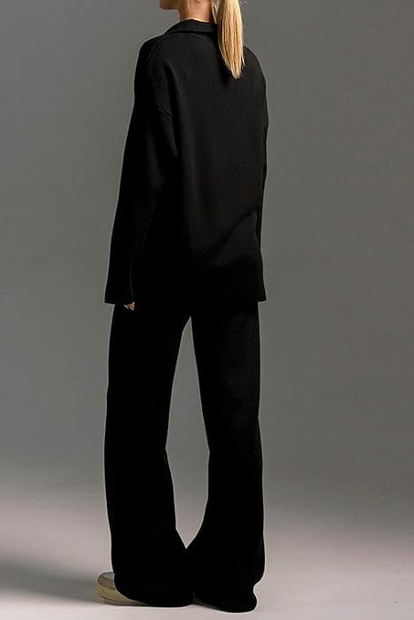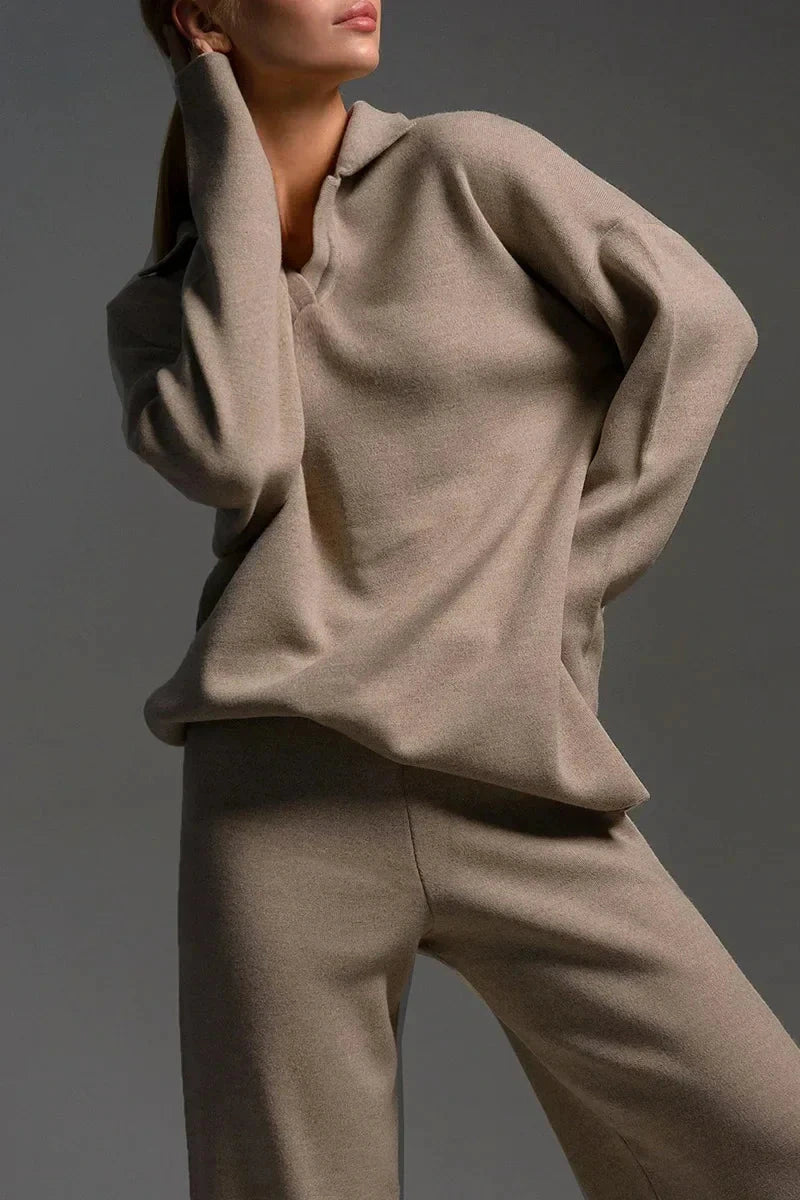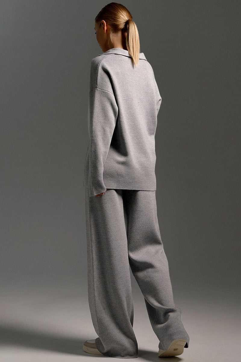 Abbina il completo a sneakers bianche o a stivaletti leggeri per sottolinearne il carattere minimalista. Per un effetto più elegante puoi aggiungere gioielli delicati e un trucco sobrio — il look perfetto per giornate e serate tranquille.